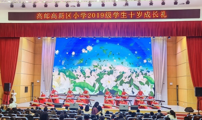 孩子们在班主任的带领下,一起走过成长之门!在震撼人心的古筝合奏表演中,“十岁成长礼”正式拉开序幕!