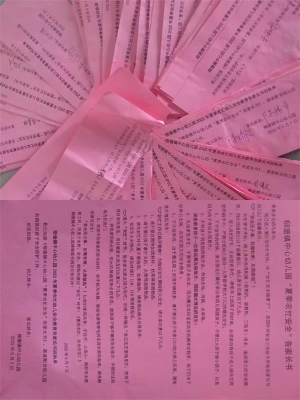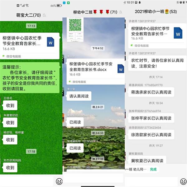 各班通过家长微信群发放《“夏季农忙安全”告家长书》,告知家长要注意孩子的出行、饮食、网络及水电等安全,引导广大家长加大对农忙期间的监管力度,促进家校共育。