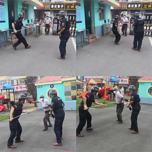 本次演练模拟恐怖分子冲击幼儿园的场景:当天上午,大班幼儿正在户外进行游戏活动,一名“歹徒”在幼儿园附近四处张望。突然,手持凶器强行闯入幼儿园,安保人员迅速持保安棍和防暴钢叉等器械到幼儿园门口与“歹徒”对峙,门卫室值班人员立即触发“一键报警器”系统进行报警,园内启动“防恐防暴”应急预案。大家合力,迅速将“歹徒”制服。