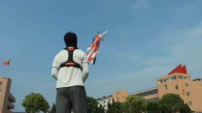 下午三点零八分,航模展览及航空表演正式开始。活动现场,同学们看着陈列在操场草坪上一架架大小不一,形态各异的航模,都一脸的好奇和兴奋,随着一架架航模相继起飞,同学们乃至老师们都被天空中来回穿梭、上下翻腾的航模深深地吸引住了,眼神紧紧黏在飞行的航模上,情绪也跟着忽高忽低,一阵阵欢呼,喝彩声连绵起伏。活动进行了一个多小时才结束,在《我爱祖国的蓝天》的歌声中同学们排着队伍恋恋不舍地返回了教室。
