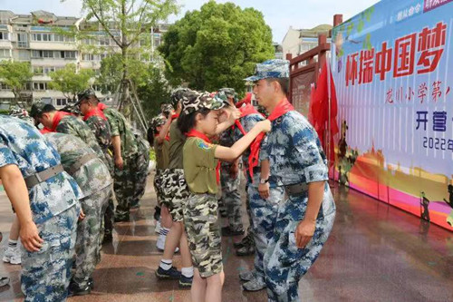 开营仪式上,龙川小学支部副书记沈网贞致辞,他勉励学员们发扬吃苦耐劳、团结协作的精神,在军训中以高标准严格要求自己,磨练意志,强健体魄,增长才干;接着,本期少年军校的教官——来自区武警中队的十二名武警战士登台亮相,少年军校的小学员们为他们敬献了红领巾,教官代表作了发言,学校为他们颁发了聘书。由此,龙川小学第八期少年军校拉开了帷幕。据悉,本期少年军校活动周期为一周,这期间,教官们将会给小学员们讲军史,带领着他们学军姿、唱军歌、进军营。