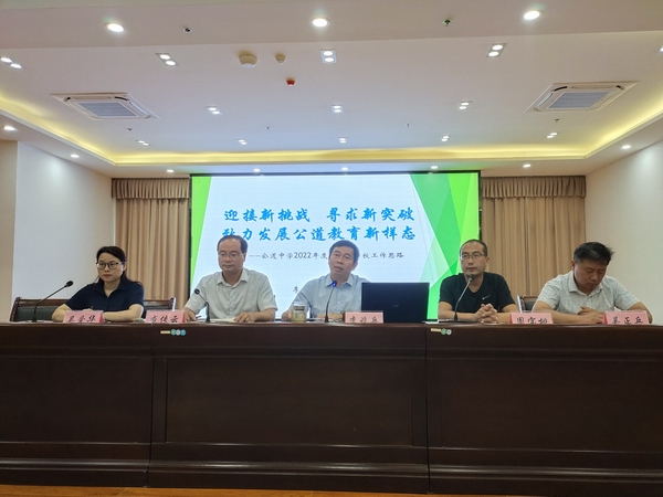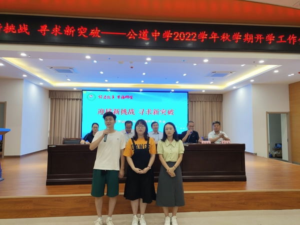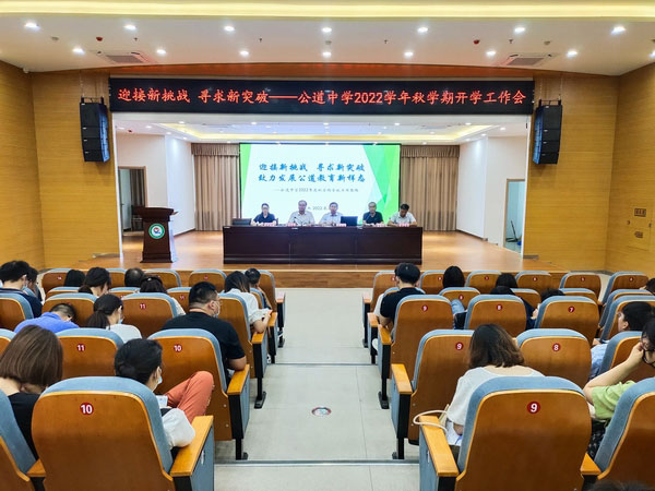 新学期,新征程。8月26日上午,公道中学2022学年秋学期开学工作会在学校风雨操场内学术报告厅举行,全体教职工参加了会议。会议由公道中学周宝桃副校长主持。