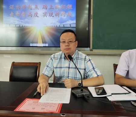 接着,李兆兵校长讲话。他首先对新学期的工作思路进行了阐释,提出“新人员、新组建、新课程、新希望”的四新理论。李兆兵校长要求高一年级新的教师团队要认真研读新教材,深化研究新高考改革相关政策,领会和把握新高考改革的本质,紧密联系学校教学实际,找到新课程改革的突破口,在新高考中抢占先机。同时他指出,全体教师要将立德树人的根本目标牢记于心,加强自身的师德师风建设,为学生树立榜样,真正做到为党育人,为国育才。最后,李兆兵校长强调,幸福来自于坚守,爱心来源于执着,责任在坚守中升华,全体教师要共同践行“公道教育,幸福师生”的办学思想。只要大家信心足、干劲大、思路清、方向明、斗志坚,2022级的同学们肯定会“一年一个样,三年大变样”。
