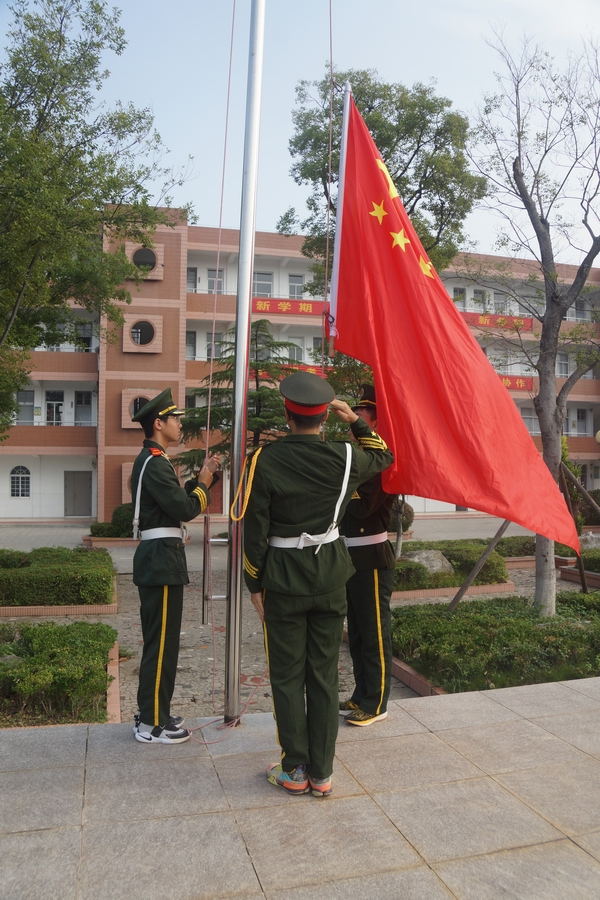 圣晶晶书记对本学期加入公中的600多名高一新生和3名新老师表示热烈欢迎。随着新一届国旗班班长一声号令“齐步走”,升旗仪式正式开始,当嘹亮的国歌声响彻公中校园,当希望的秋日照耀五星红旗,目光所及之处同是那一抹中国红。忆往昔,一代代公中人无数次站在这里望着国旗飘扬;当此刻,一份份崭新的心愿将承续红光,勇往直前。