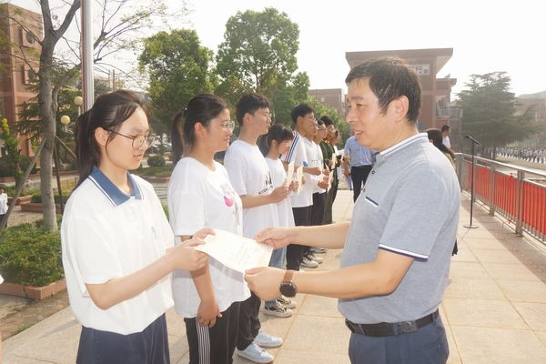 质量永远是一所学校的生命线,学生成长是学校发展的坚实力量。吴正兵校长助理宣读上学期“三好学生”表彰决定;吴爱华校长助理宣读“张正喜奖助学金”颁发规则;周宝桃、盛传云两位副校长宣读“张正喜奖助学金”获奖名单,校长室全体领导为获奖同学颁发证书,获奖同学们从领导手中接过“金灿灿”的证书。这证书既是满满的认可,也是沉甸甸的责任。