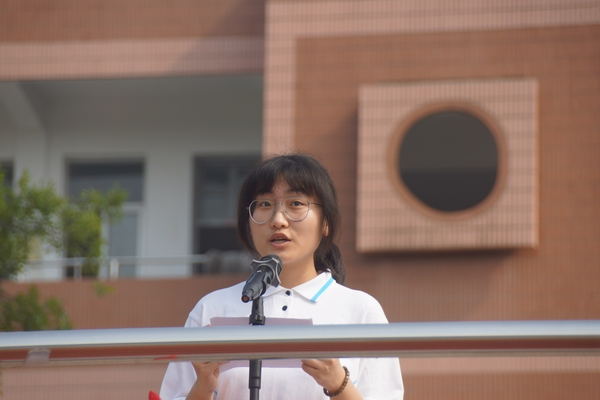 “淮扬古镇,阮元故乡,文明校园,历史悠长,杰出校友,遍布四方,肩负使命,弘扬国光……”学生会主席黄典带领全体学生声情并茂地齐诵《我们创造新的辉煌》。声势浩大的群诵响彻公中校园,表达着对公中的爱与责任。