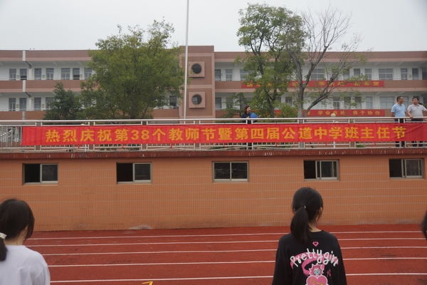 9月8日上午8时许,时值第38个教师节即党的十八以来的第十个教师节来临之际,扬州市邗江区公道中学在操场举行了“‘绿色教师节’暨班主任节”庆祝活动,活动由公道中学团委副书记崔婷主持。