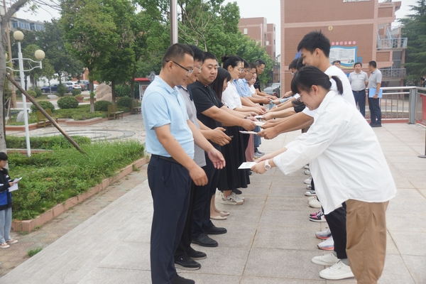 随后,学生代表向教师代表李兆兵校长以及全体班主任献上贺卡。贺卡上一行行质朴的祝福语,代表着他们对老师们辛勤付出的感恩;一个个学生亲手书写的名字,是他们发自内心深处的敬爱。