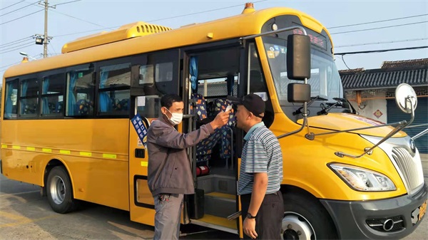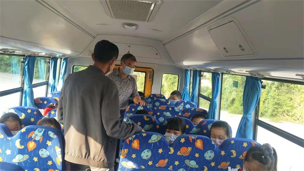 校长倾听了学生心声,与校车照管员进行交流,并对校车运行的路线,每个转弯、十字路口等都做了详细的了解,认真查看了校车照管员给上车学生测温、记录、点数学生数、学生安全带佩戴等操作。
