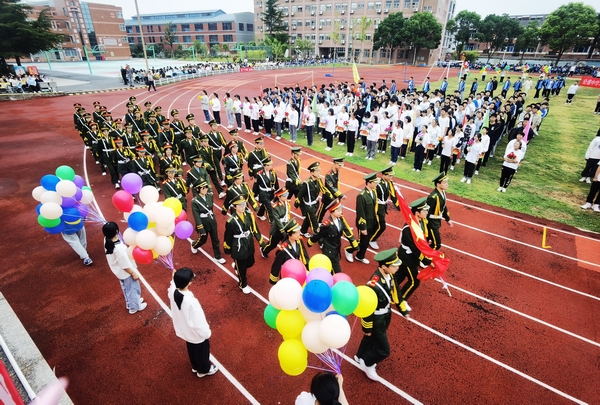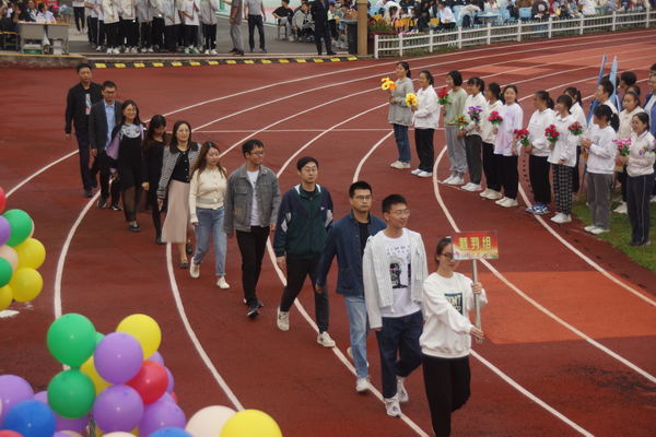 8:00,开幕式正式开始,在雄壮嘹亮的运动员进行曲中,国旗队、校旗队、鲜花队、彩旗队等方阵激情昂扬,步伐坚定地走过主席台。随后各班运动员方阵服装整齐、口号响亮的依次出场,充分展现了公中学子意气奋发的青春风采。