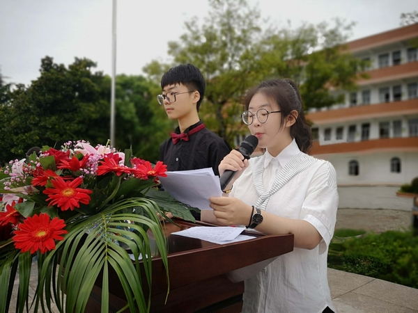 入场仪式结束后,全体肃立,奏唱中华人民共和国国歌。公道中学校长助理吴爱华致开幕词。她代表组委会对本届运动会的顺利开幕表示热烈的祝贺!向认真筹备组织本次运动会各项工作而付出艰辛努力的工作人员表示衷心的感谢!向刻苦训练,积极备战的运动员们表示亲切的问候!她表示一年一度的秋季运动会既是我校体育工作、师生体育素质和精神风貌的一次检阅,也是对运动员身体素质、竞技才能、心理承受能力等综合素质的考验,更是师生欢聚、增进交流、公平竞争、团结拼搏的一个平台。她衷心希望每位运动员能够发扬更高、更快、更强的奥运精神,安全参赛、文明参赛,规范参赛,让青春的活力迸发在赛场上的每个角落。