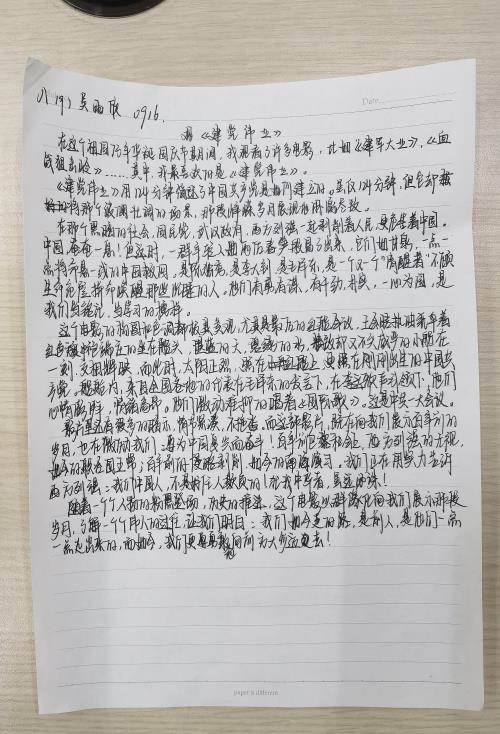 本次国庆德育实践活动,厚植了学生的爱国情怀,在学生心中种下了一颗“爱国”的种子,更容易让学生牢记历史使命,增强责任感和使命感,感悟家国情怀,激励学生奋发向上的昂扬斗志。 |