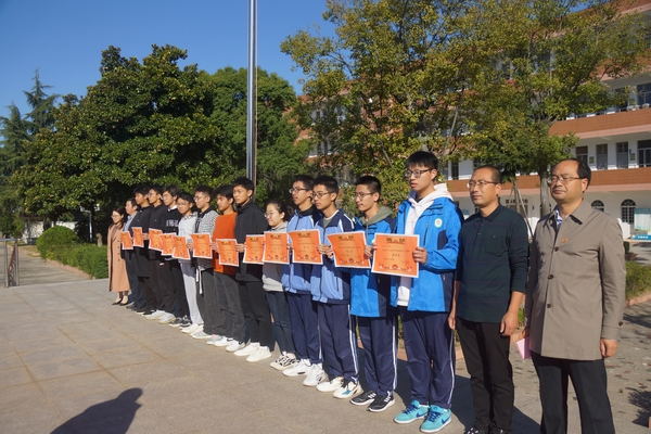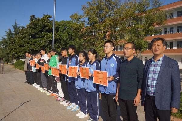 颁奖仪式首先由吴正兵校长助理宣读本届运动会各项比赛取得个人单项前三名的运动员名单,盛传云副校长宣读了本届运动会各年级取得前四名的班级,周宝桃副校长宣读了道德风尚奖获奖班级名单,李兆兵校长宣读精神文明裁判员名单,全体校领导为获奖班级与个人颁发荣誉证书。