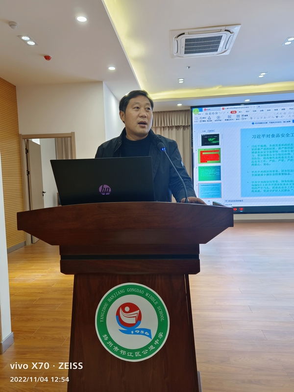 为全面贯彻落实党的二十大报告中“将‘健康中国’作为我国2035年发展总体目标的一个重要方面”的精神,坚决守牢学校食品安全底线。11月4日中午,学校专门组织召开了公道中学校园食品安全知识培训会议。参会的有德育处主任杨正海、总务处副主任冯俊林及所有学生宿舍舍长,会议由高一年级副主任葛俊老师主持。