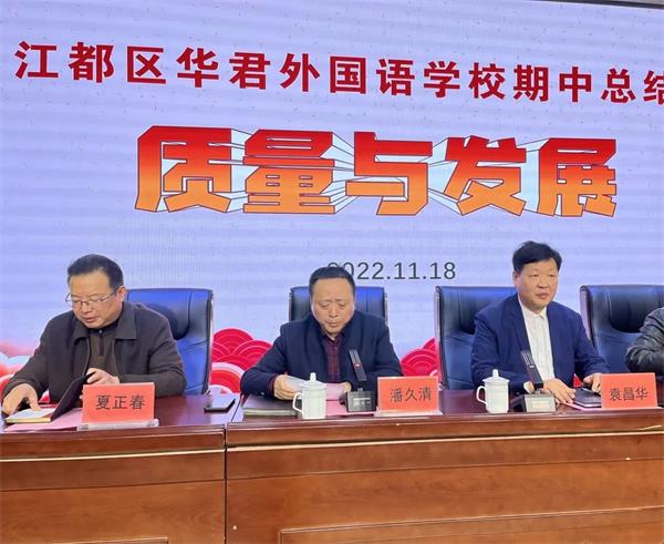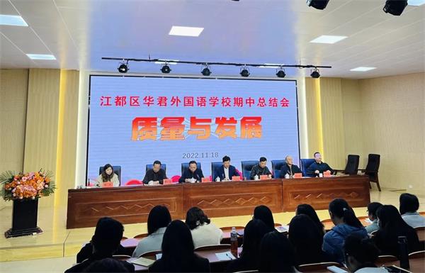 11月18日,江都区华君外国语学校围绕“质量与发展”,召开期中总结表彰大会。