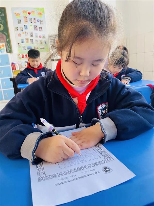 2022年11月15日,孩子们迎来了本学期第一次书写童子功展示活动,大家认真专注,一丝不苟,对自己笔下的每一个字都投入了十分的热情和专注,经过二十分钟的努力,一个个汉字方方正正、结构匀称地落于纸上,每一份作品都凝聚了他们对汉字的热爱。