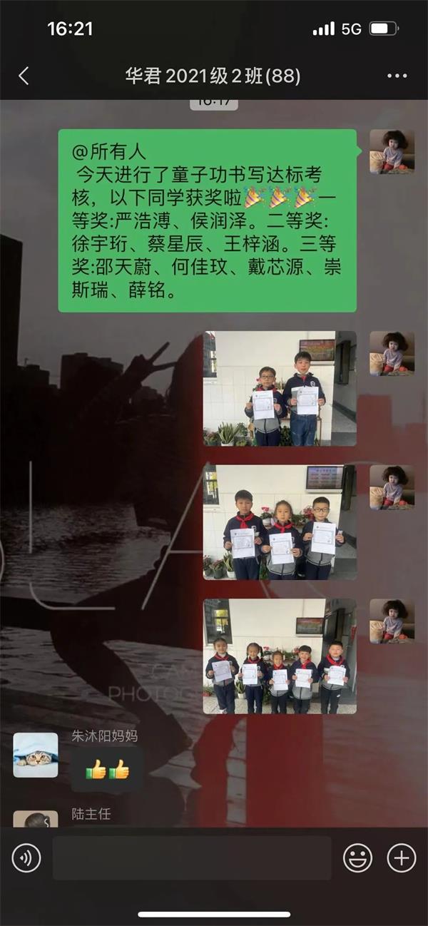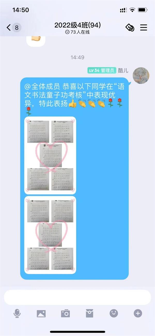 老师们在班级群分享学生的书写作品,一字一世界,一笔一乾坤,家长们同步感受到了孩子们的用心和成果。