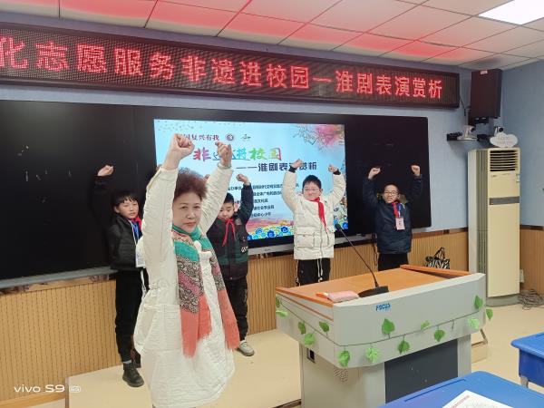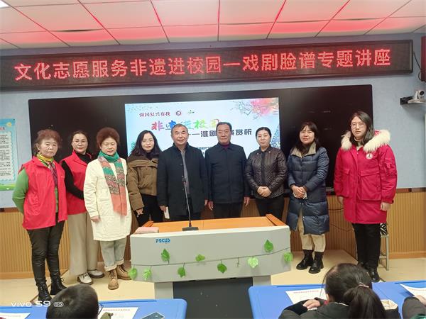 活动中,志愿者与学生讲述了戏剧脸谱的起源、形成、发展及传承的重大意义,详细讲解了戏剧脸谱的构图、色彩和创作思路,并现场给同学们展示、发放了戏剧脸谱;随后,志愿者们又向同学们展示了淮剧表演,并手把手指导同学们进行表演体验,同学们学得兴趣盎然;活动最后,志愿者们又带领同学们参观了宝应本土非遗展牌,大家井然地跟着讲解员观看一面面展板,认真聆听着讲解,不时低声交流,感受优秀传统文化的魅力。