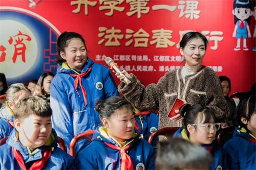 江都区司法局政治处主任陈斌、普法与依法治理科科长黄晨,浦头镇党委副书记奚亚明、党委政法委员陆文龙、副镇长高建国参加活动。 为引导孩子们扣好人生第一粒扣子,活动邀请了浦头镇牛皮纸印章非遗传人韩宗,现场教学制作个人学法笔记本,通过实践感受法治深度。元宵将至,司法局团支部副书记王竞浛、浦头镇团委书记李涛带领浦头中心小学学生玩起猜灯谜游戏,在游戏互动中引导青少年了解有关“法”的知识。最后,浦头镇司法所所长张亚楠以“与法同行 茁壮成长”为题为同学们带来了一节开展法治课堂。