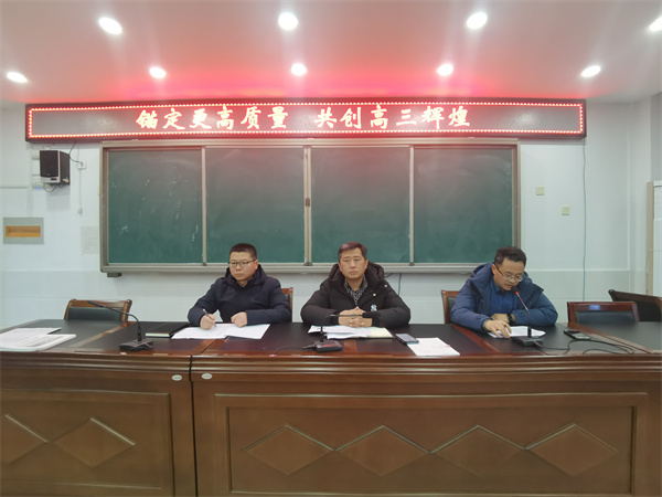 接着,高三年级负责人吴正兵校长助理作题为《锚定更高目标 共创高三辉煌》的主题讲话。他要求全体高三教师要重计划更要重执行。目前,高三年级已公布高三新学期的日历和周计划。各备课组的教学计划已张贴上墙,二轮、三轮的复习迎考工作也在有序谋划中。他强调,每位教师要做到心中有计划,手中有策略,要坚定不移、不折不扣地强化执行力,将计划落地生根,开花结果。接着,他强调,每位高三教师要有信心更要有拼劲。我们目前的整体质态运行良好,这是我们的信心和底气,但是,成功从来不是唾手可得的,需要我们有拼劲、能吃苦、打硬仗的能力和毅力。最后,他希望每位教师有热爱更要有奉献。高三承载着太多学子求知的渴望和万千家长的殷殷期望。作为高三人,我们要同舟共济、竭尽所能地助力高三学子们圆梦理想,达成所愿。