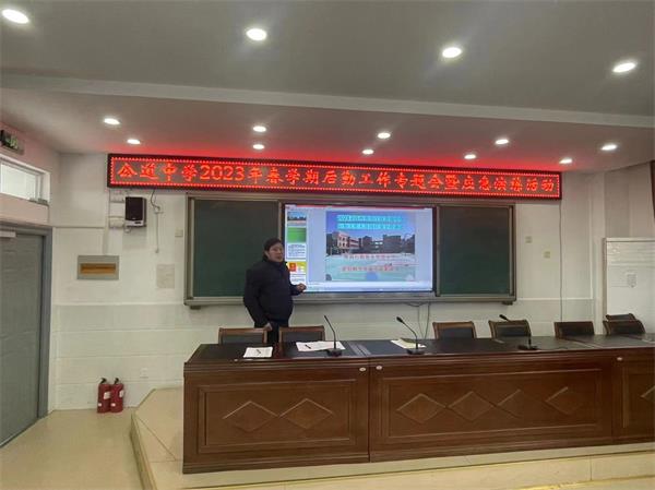 2023年春季开学之际,公道中学专门组织召开了后勤人员安全工作专题培训会。参会的有分管学校后勤工作的盛传云副校长、总务处副主任冯俊林及保安、物业、舍管、浴室、食堂等所有后勤工作人员,会议由冯俊林副主任主持。