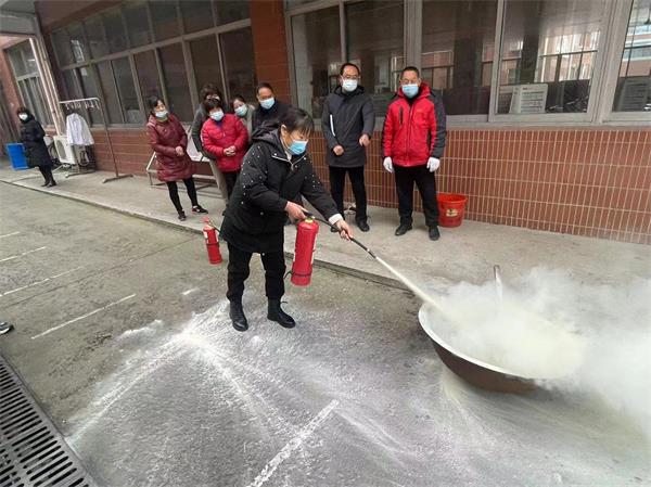 会议的第三个议程由冯俊林副主任向大家进行了消防安全知识的培训。他结合生动的消防知识课件内容,向大家列举了某些地方火灾发生的惨痛事件,火灾场面触目惊心,使在场培训人员深受触动!随后重点讲解了灭火器的使用方法,以及火灾发生时逃生的技能和方法,使在场的所有学校后勤人员受益匪浅。最后在盛传云副校长的带领下,所有后勤人员一起来到到指定场所进行“防火实战演练”,在他的统一指挥下,大家迅速投入到演练活动各自岗位中,面对突发火情,每位工作人员都亲自上阵进行实际操作,都能从容不迫的进行灭火,及时消除了安全隐患。