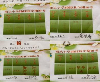 根据上级教育部门要求,开学两周继续完成上学期因受疫情影响而未完成的学期结束工作。浦头小学于2023年2月16日如期举行一、二年级上学期末趣味游考——游园闯关活动。为举行好本次“游考”,学校教导处精心制定了“游考”方案,帅秀军副校长提出“有序、有趣、有质”的六字方针,让游考的内容更加多元化,注重学生多方面潜能的发展。语文游考设计了字词我能行、背诵我最棒、我爱讲故事三大项目,根据学生在规定时间内完成情况给予不同评价,分别以星星等级给予肯定和鼓励。孩子们流利地朗诵着诗词,声情并茂地讲童话演故事,每个人脸上都洋溢着快乐自信的笑容。 数学游考共设计三个闯关活动,分别是口算我最棒、算珠我会拨、图形我来猜。主要考察学生的口算能力,巩固基本的数感和图形意识。根据学生回答的速度和准确率进行评价,获得星级。 音乐科目主要让学生运用正确姿势演唱曲目,能够用自然的声音,按照节奏和旋律有表情的演唱歌曲,尽量采用不同的力度、速度表现歌曲的情绪,做出老师出示的音符相对应的“柯尔文”手势。 体育项目设计队列队形以及原地转法、演练广播操。根据老师的口令,完成正确的动作,随机指定一节广播操,学生进行该节广播操测试。