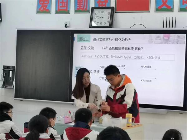 首先,上午第二、第三节课分别由来自瓜洲中学何小芳老师、公道中学金琳老师、邗江中学吴昱琪老师、公道中学汪伟老师四位新老师同课异构了《Fe2+和Fe3+的相互转化》这节课。