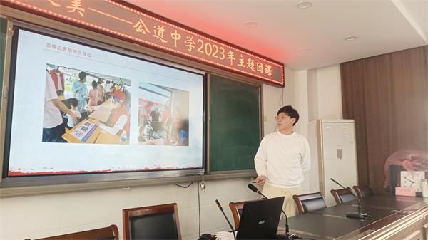 雷锋的名字家喻户晓,雷锋的事迹深入人心,雷锋精神滋养着一代代中华儿女的心灵。为深入学习、传承、弘扬雷锋精神,鼓励学生做时代英雄,3月10日中午,共青团扬州市邗江区公道中学委员会组织开展了“学习雷锋精神 扬生命之美”主题团课。校团委部分团员学生和2023年入团积极分子参加了本次活动。活动由校团委圣晶晶书记主持。