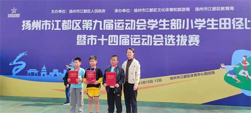近日从刚刚落下帷幕的江都区第九届运动会学生部小学生田径比赛中传来喜讯,该校田径运动队在比赛中取得乙级队第一名的好成绩,荣升区甲级队。其中龚家荣