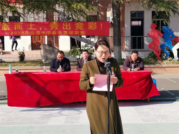 在开幕仪式上,公道中学吴爱华校长助理致开幕词。她指出,公道中学作为扬州市体育传统项目学校(篮球),多年来学校一直致力于篮球运动的推广,并于2017年创成扬州市青少年篮球训练基地。每一年的春季篮球赛是公道中学一项传统的体育重要赛事,本届春季篮球联赛赛前准备充分,分工明确、宣传到位、责任落实到位。吴爱华校长助理对悉心筹备此次比赛的师生表达了感谢,并提醒同学们做好热身,注意比赛安全,希望同学们赛出热情,赛出自我,赛出风格,养成文明行为新风气,形成校园篮球运动新风尚。