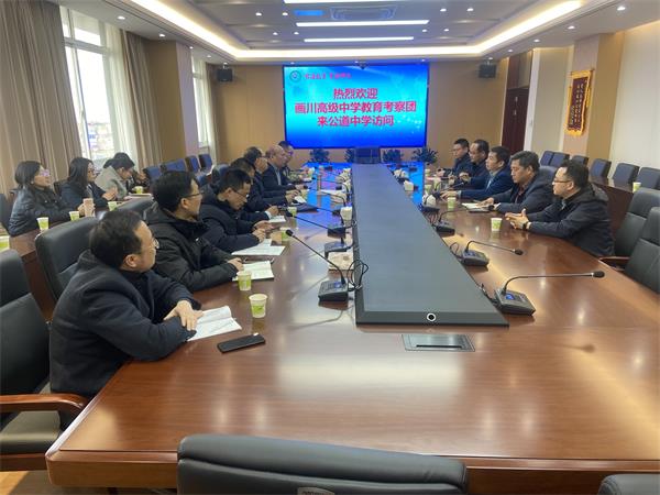 在学校教学研究中心五楼会议室,画川高级中学教育考察团一行首先观看了一部学校创建的视频,对公中历史沿革及发展状况等有了进一步了解:2016年创建为江苏省四星高中、2017年荣获全国第一届文明校园。学校以评促建,不断促使办学质量实现新跨越——连续十年荣获扬州市高中教育质量先进单位称号等。吴万政书记表示,近年来,公中在一般生源基础上,逐步形成了错位发展、特色及多元化发展之路,有力促进了学校可持续发展。两校之间有着诸多共同之处,可搭建合适平台,不断发掘潜力,进一步加强合作,为两校每一位学生提供合适的成人、成才之路。