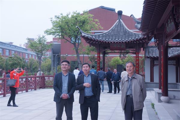 在李兆兵书记等人的引导下,王定勇院长率领的扬州大学文学院第三、四支部教职工实地考察了学校阮公亭、三碑亭、图文信息中心、九龙苑(学校教学办公区)、礼乐中心(学礼堂、琴房、舞蹈房)、教学研究中心等处。学校厚重的文化底蕴、日益彰显的办学特色、突出的发展成果等,给扬州大学文学院老师们留下了深刻印象。
