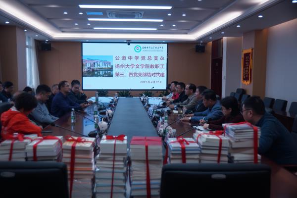 为了进一步加强中学与高校在师资培养、教育改革、教育衔接等方面的合作,实现高质量发展,2023年4月19日下午,在扬州大学文学院院长王定勇的率领下,扬州大学文学院教职工第三、四党支部一行20人莅临公道中学开展校际共建活动,公道中学党总支书记、校长李兆兵、副校长盛传云、校长助理吴正兵、吴爱华等参加了本次共建活动。