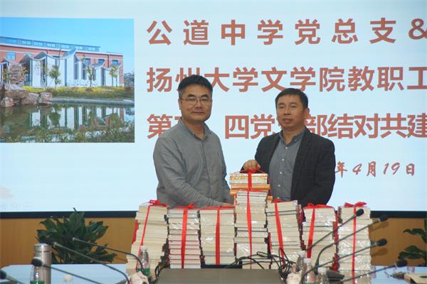 活动结束前,举行了隆重的图书捐赠仪式。扬州大学文学院精选了一批图书为公道中学师生送来精神食粮。