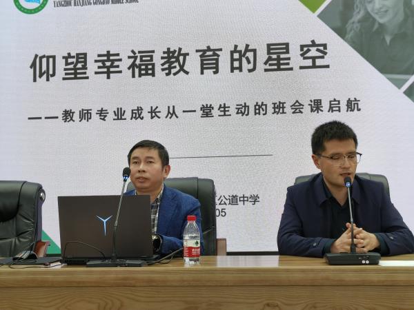 2023年5月8日,扬州市邗江区公道中学党总支书记、校长李兆兵受邀为扬州大学外国语学院学生做了题为《仰望幸福教育的星空——教师专业成长从一堂生动的班会课启航》的专题讲座,讲座由扬州大学外国语学院张强副院长主持。
