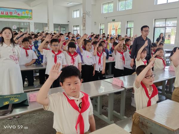 首先,纪廷才校长致辞,他希望同学们珍惜美好生活,从小树立共产主义远大理想,做一个自尊、自爱、自信、自立、自强、有担当的好少年,并代表全体老师祝同学们六一儿童节快乐!