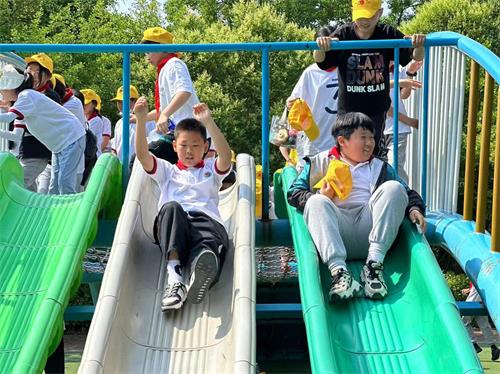 在国家四A级景区宋夹城,大家欣赏美丽的自然生态风光的同时,也感受着扬州城悠久的历史文化。在扬州双博馆同学们边参观,边听着导游的讲解,扬州2500多年的发展历程,两汉时期富庶,隋唐时代的空前繁荣以及明清时期日落之前的辉煌历历在目。从新石器时代的文化遗存,到春秋战国以来的金属器、陶瓷玉器、名人书画、各类雕刻艺术品,一直到近代以来的名家作品都有收藏。"豪华落尽见真淳",历史的烟云早已散去,千年文物无言地诉说着往昔的繁华。同学们感受着扬州厚重的历史文化底蕴,对家乡扬州有了更为深入的了解。最后同学们来到扬州梦幻之城,童趣乐园、飞天木马、飓风大摆锤、骑士过山车……在一个个游乐项目中孩子们挑战自我、放飞快乐,玩得不亦乐乎。