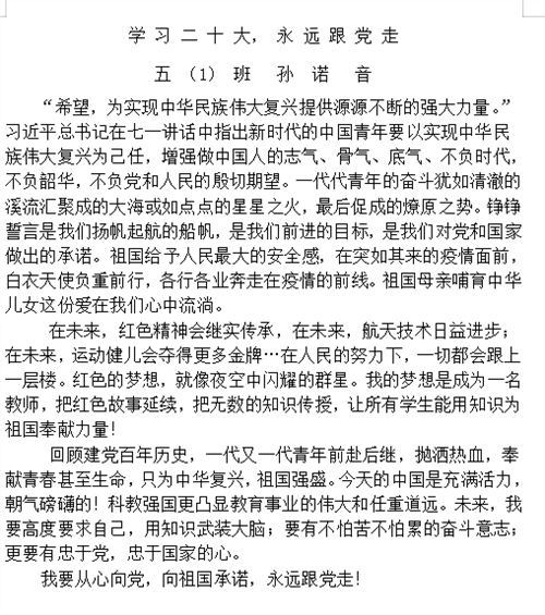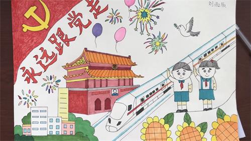 队员们以绘画、书法作品、手抄报、文字等方式描绘出国家和家乡发展成就、畅想未来美好生活,表达了自己的爱国之情,营造了学习二十大的浓厚氛围。