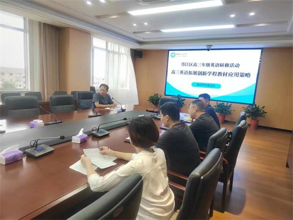 本次研修活动的主题为:高三英语拓展创新学程教材应用策略。活动形式为:教学示范和交流研讨。