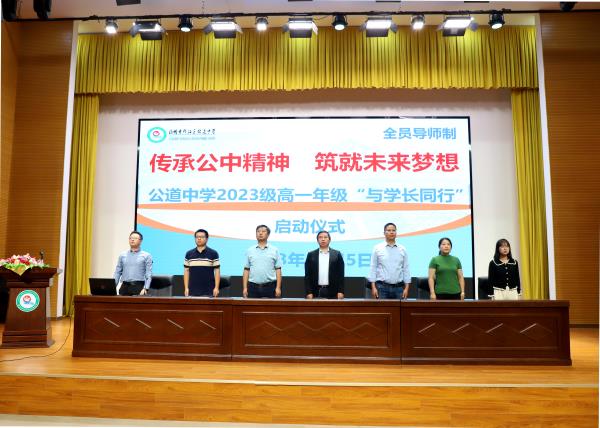 为传承公中优秀因子,发挥公中优秀学长的引领作用,助力公中2023级学子向优秀学习、向卓越进发,10月5日上午,公道中学2023级高一年级组经细实研究和周密组织并报校长室批准,在学校风雨操场报告厅开展了“与学长同行”计划启动仪式。公道中学党总支书记、校长李兆兵、2023届优秀学生代表、高一年级家委会代表出席会议。会议由高一年级主任王忠祥主持。