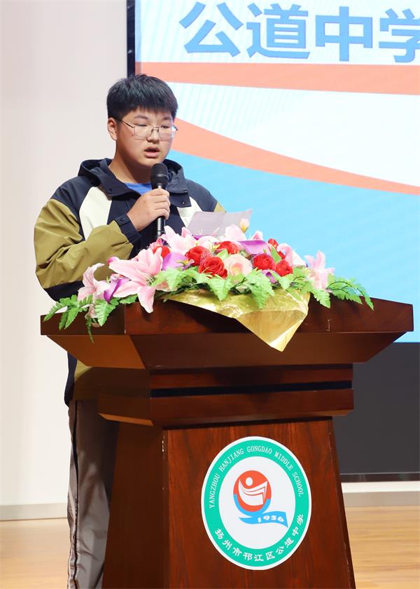 高一年级学生代表谢平渲同学发言。他代表全体高一同学承诺,一定倍加珍惜本次与优秀学长同行的机会。虚心学习和求教,以优秀学长们作为榜样,沿着学长们的成长足迹不断努力和奋斗。