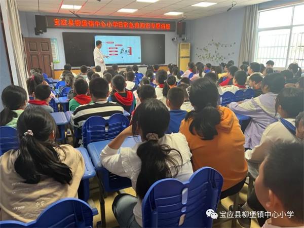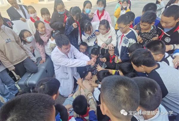 10月16日下午,柳堡镇防保所石磊医师等一行三人应邀走进柳堡镇中心小学,对我校学生做了日常急救知识专题讲座,并在户外进行急救方法现场演练,从知识的讲解到自救方法的操作,给全体同学上了一堂别开生面的生命自救课。