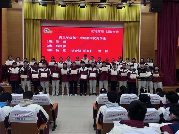 11月26日上午,高三年级学生表彰会在学校报告厅隆重举行,全体高三学生及班主任参会。