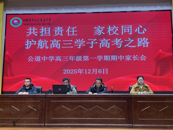 为进一步加强家校联系,凝聚更强的教育合力,更好护航高三学子高考之路。12月6日下午,公道中学高三年级在学校风雨操场报告厅举行了高三年级第一学期期中家长会。会议由高三年级主任王忠祥主持。