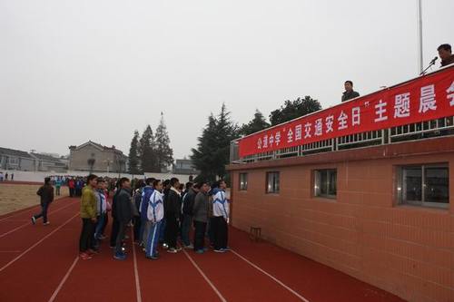 在晨会上,政教处副主任吴正兵给同学们提以下几点要求:1.骑自行车在公路及街道上行驶,必须靠右侧或慢车道行驶,不准并列行驶或争道抢行、不闯红灯,不与机动车抢道、抢桥。2.骑自行车不准撑伞,不准双手离把或一手扶把,不准做一脚踏车游戏式骑车,不准互相追逐,扶肩并行,载头猛拐,曲绕行驶,不准攀扶其他车辆在人行道上行驶,转弯时须伸手示意,不准拖带其他车辆。3.步行或骑车必须靠右行走或人行道上行走。4.步行或骑车,在横穿街道、公路或交叉路口时,要遵循“一看,二慢,三通过”原则,在无来往车辆时通过。5.严禁在机动车临近时横穿公路、机耕路。6.不准在街道上、公路上、机耕路上拦车、爬车、追车和强行搭车。7.在公路、机耕路或其他道路上行走时,不准钩肩搭背,三五成群并肩而行,不准边走边看书或边玩耍。8.前进途中,遇到路边堆放障碍物时,待无来往车辆通过时再通过,并且要靠安全一侧。