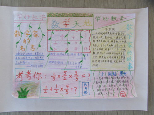 在一周的时间里,学生体会“学数学 用数学 创数学”的过程:富挑战性数学碰碰撞,让同学们享受到了突破难题后的无与伦比的成功快感;“24点大比拼”大大提高了同学们对数学学习的兴趣; “数学手抄报评比与展览”、 “数学童话荟萃”、“ 数学小论文展”等活动将同学们再次带进了现实生活之中,大家收集整理数据,挖掘数学元素,真真实实地用了一回“数学”。