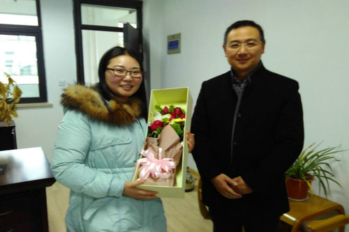 清早,女教师们刚踏进校门,就通过抽奖形式,收到了同伴们亲手制作的祝福贺卡及校长的节日祝福。刘庆昌校长代表全校师生为收到“神秘贺卡”的10名女教师赠送了鲜花。一束束包装精美的鲜花,映射着一张张快乐洋溢的笑脸。