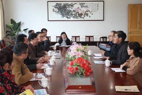 在学校四楼会议室,沈文涛校长向连云港的客人们介绍了公道中学发展历程、学校概况、办学理念,近十余年来学校以“文艺并举 双轮驱动”发展战略所取得的一系列成果等。学校艺术部负责人贡加兵副校长就学校艺术教育办学模式、课程安排、人员安排、艺术教育的特色成绩及扬州市高中美术学科基地建设、江苏省高中美术教育课程基地建设等为客人们作了较为详细的介绍。章荣斌校长等人认为,两校共同的发展经历、教育特色及生源状况,今天也都面临着相似的发展瓶颈——进一步彰显学校办学特色和挖掘优质自身的优势教育资源,为今后两校携手共建奠定了基础。在和谐、愉快的氛围中,宾主双方还分别从美术、音乐、艺术教育管理等方面分组就学校发展、教育特色彰显、学生培养方式等方面问题进行了探讨。