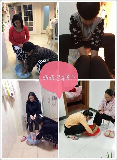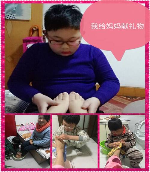 妈妈,你的脚累吗?每天为我忙忙碌碌,洗洗刷刷,送我上学,接我放学。妈妈,给你洗脚舒服吗?我以后天天给你洗,让你每天都过妇女节!